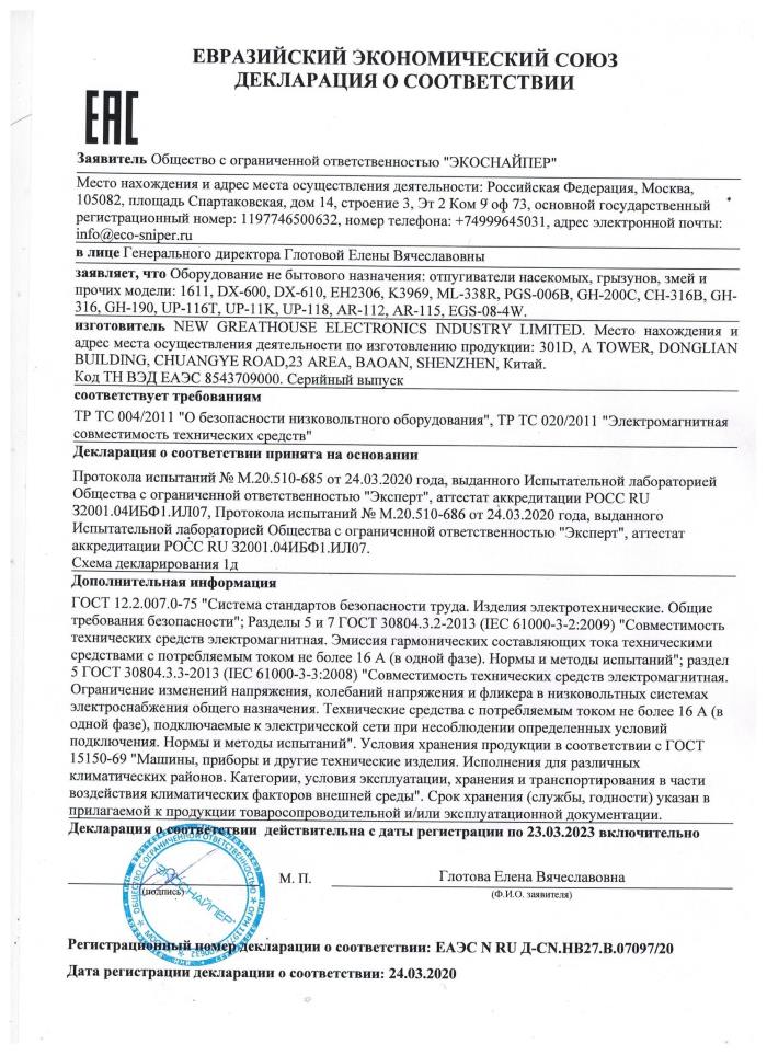 Электромагнитный отпугиватель «Экоснайпер UP-116T» станет безупречным решением для борьбы с насекомыми. Это супер функциональное устройство, которое работает против подавляющего количества вредителей и сочетает в себе 4 функции: