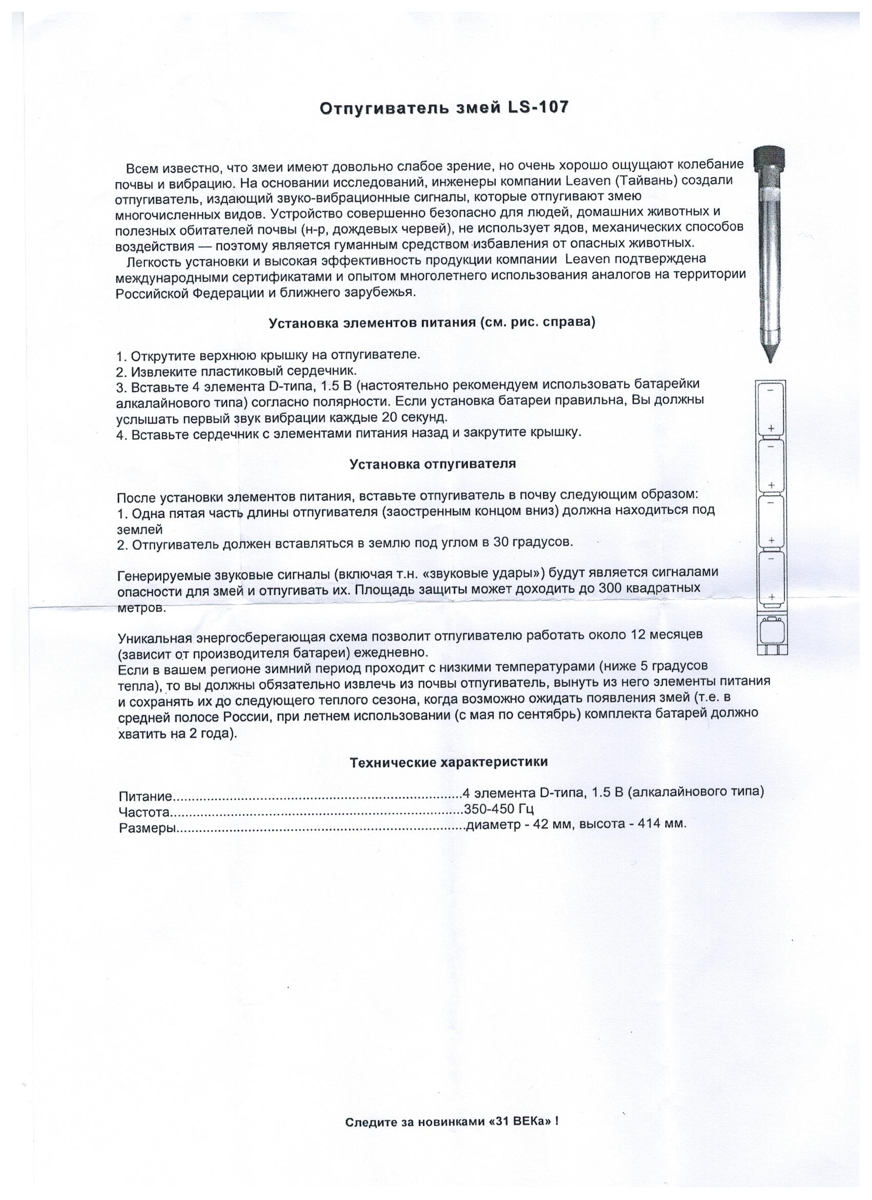 - Повышенная эффективность – устройство разработано специально для защиты от змей, имеет постоянно меняющиеся интервалы и частоту колебаний.